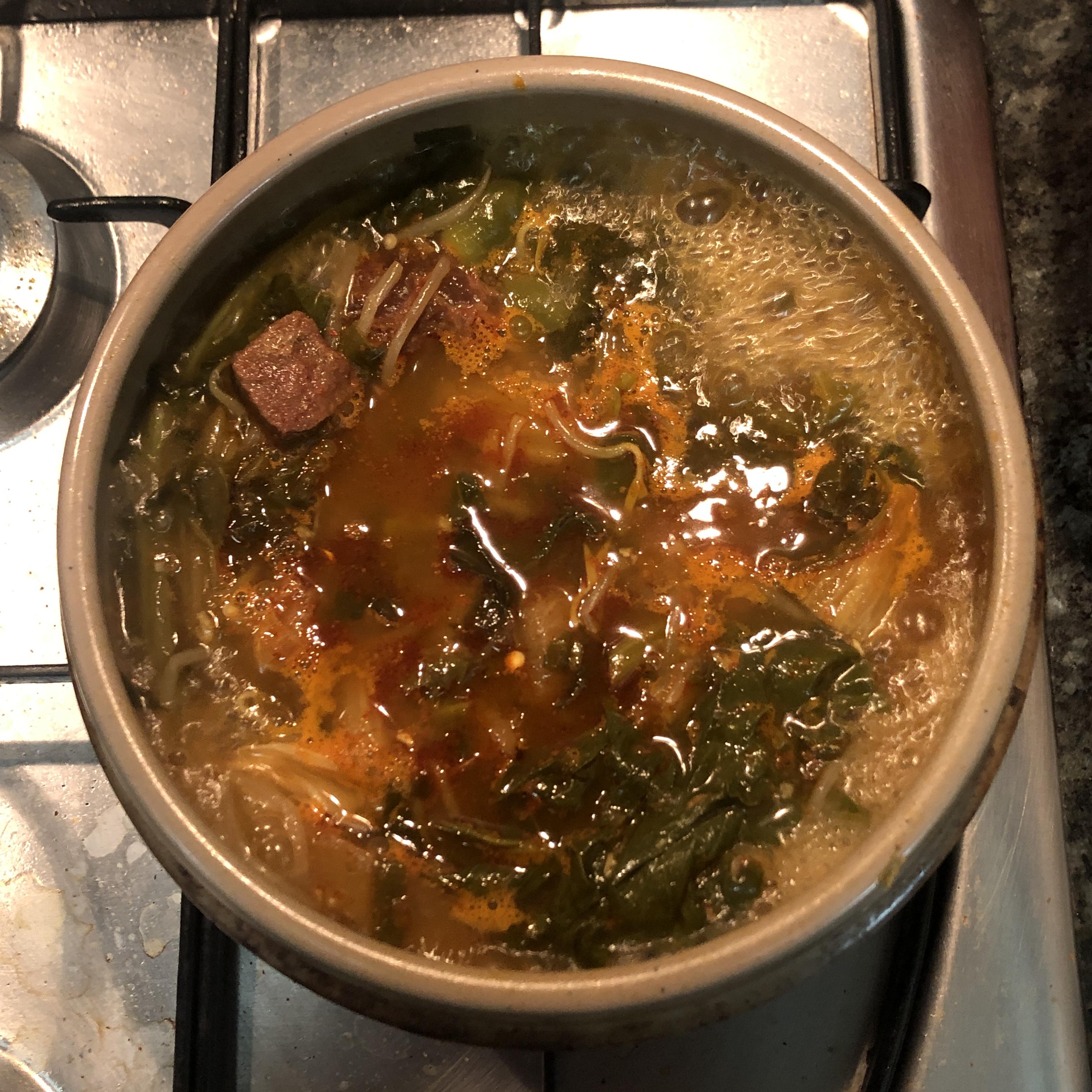 2. 재료 넣고 15분 끓이기 (숙주제외)