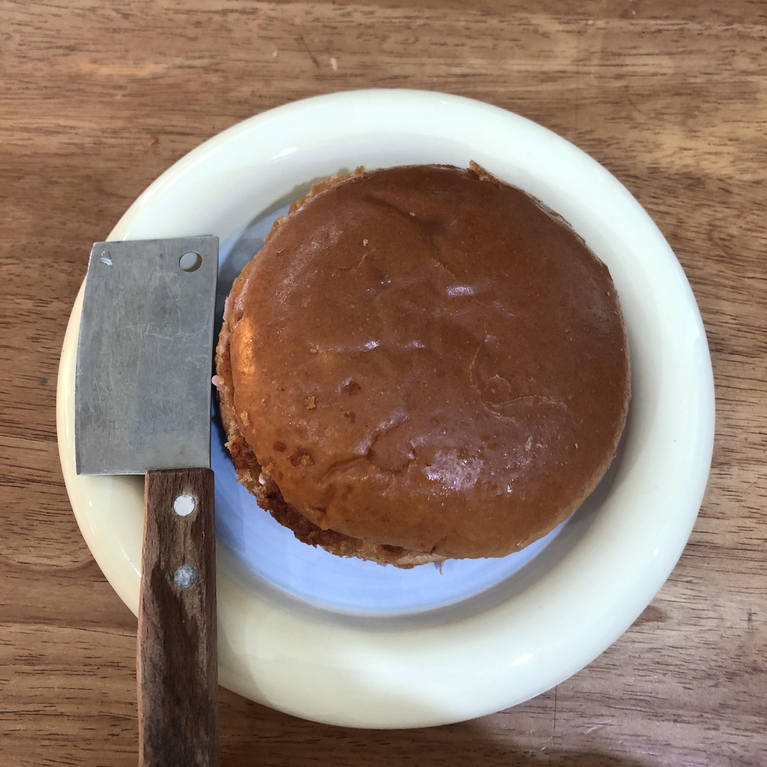 패티 안에는 얇은 돼지고기가 들어가 있어요.